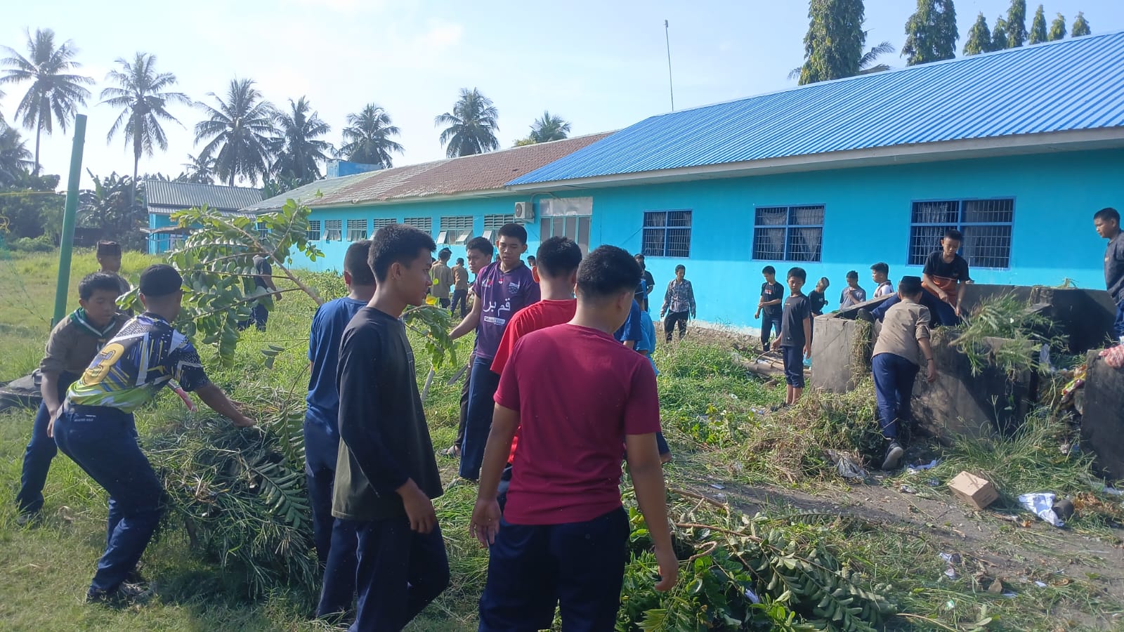 Pinrang, Sabtu (18/10/2025) — Dalam rangka menyambut Hari Santri Nasional, para santri Pesantren Darul Arqam Muhammadiyah Punnia melaksanakan kegiatan gotong royong membersihkan lingkungan madrasah, khususnya area belakang gedung yang mulai ditumbuhi rumput liar.